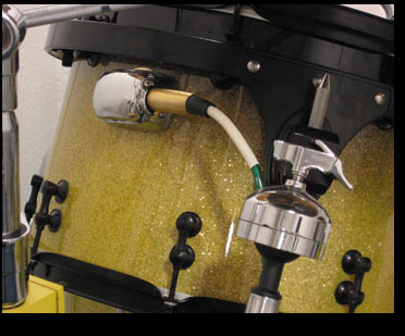 The kit is also outfitted with a proprietary microphone set-up that allows extremely accurate, isolated drum recording for each drum.